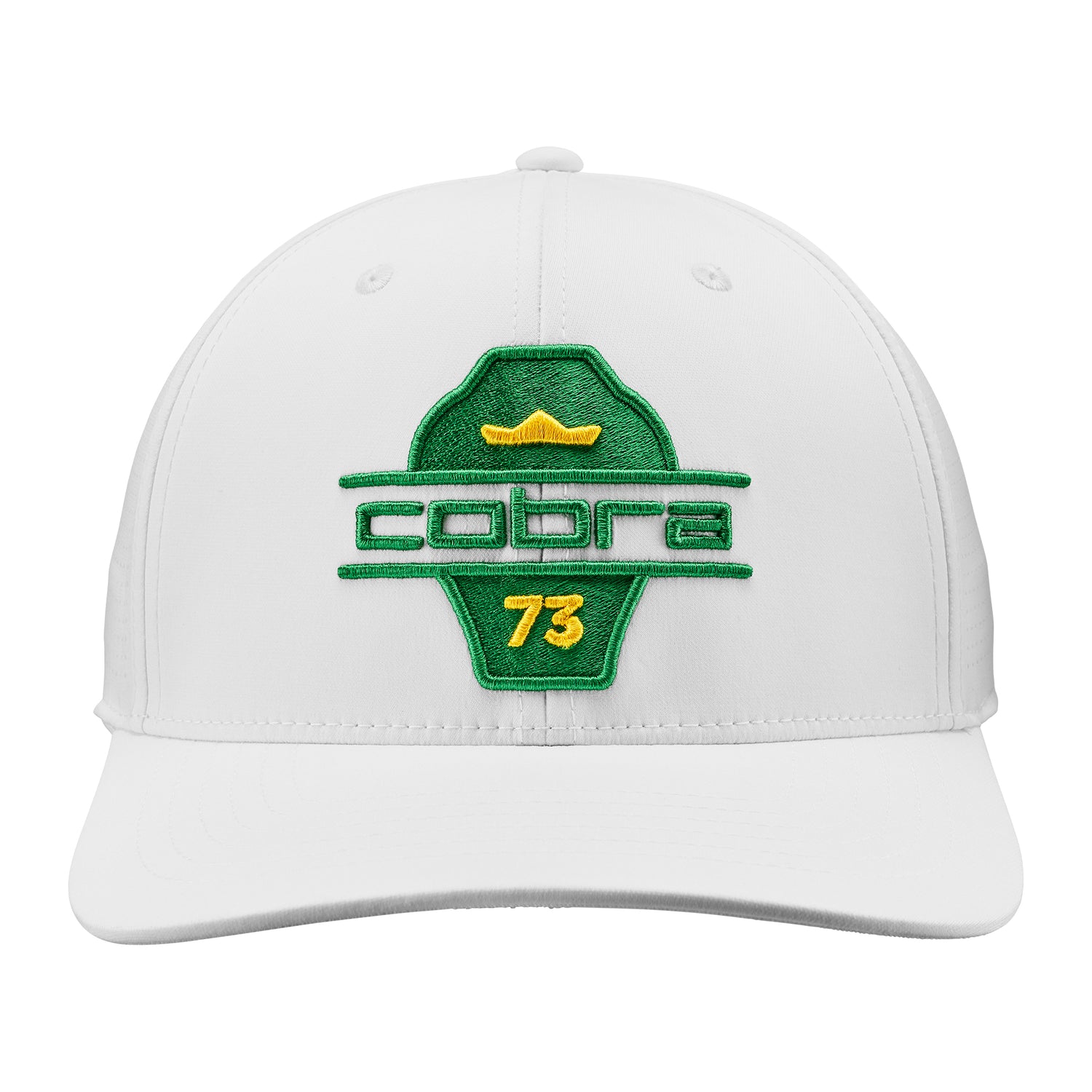 The COBRA Split Tour Cap is a staple in any golfer's collection. The brim features a slight curve and a FlexFit 110 cap with moisture wicking sweatband. This cap also features perforated panels to keep you cool on and off the course. On the front of the hat is a 3D embroidered logo paying homage to COBRA Golf's beginnings.