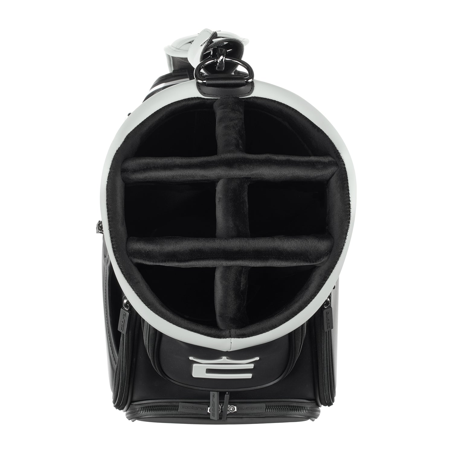 Used by golf professionals worldwide, the COBRA Tour Staff Bag is crafted with premium materials and features nine spacious pockets, including two massive apparel pockets and multiple accessory pockets that provide more than ample storage room. A large six-way top with two full-length dividers keeps your clubs organized and protected.